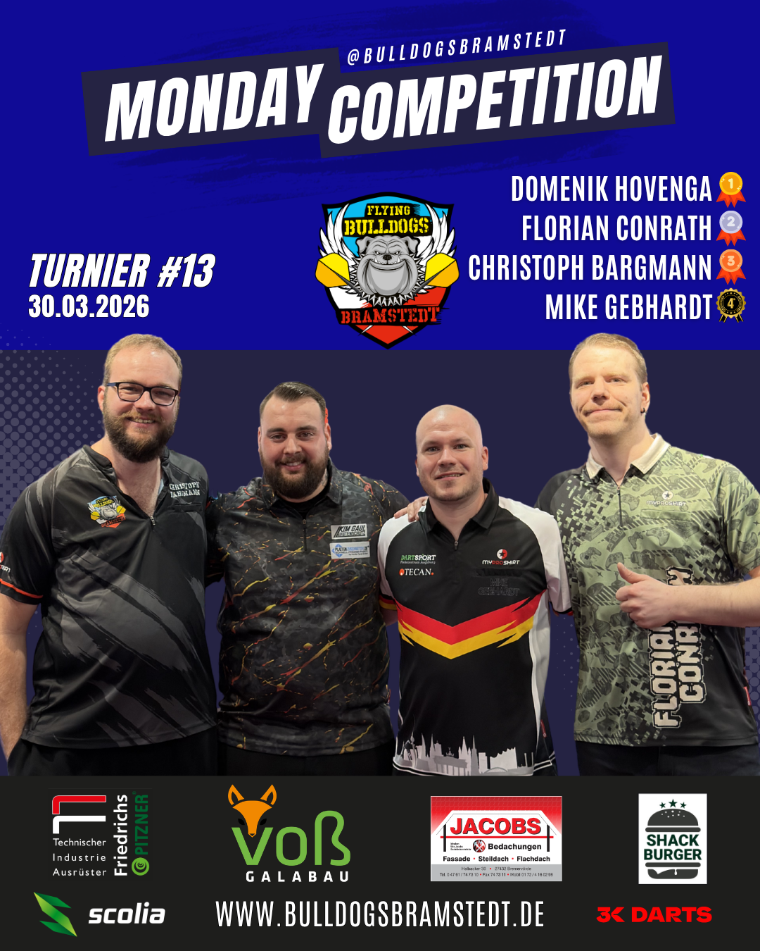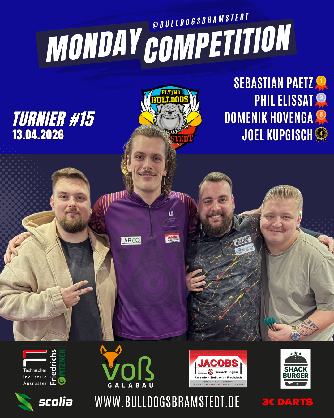 ๐ฏ ๐๐จ๐ง๐๐๐ฒ ๐๐จ๐ฆ๐ฉ๐๐ญ๐ข๐ญ๐ข๐จ๐ง #15 โ ๐๐๐ฌ๐ญ๐๐ซ-๐๐ฎ๐ญ ๐๐ซ๐ฎ๐๐ค ๐ฉ๐ฎ๐ซ! ๐ฏ ๐ฒ Unser WhatsApp-Info-Kanal:https://whatsapp.com/channel/0029VaVHrmFK0IBq6X4XOQ1J ๐ฅ Es beginnt Turnier #15 am 13.04.2026 stand ganz im Zeichen von 501 Single-In / Master-Out โ also genau der Modus, bei dem du zwar wie ein Gott scoren kannstโฆ aber am Ende trotzdem am Doppel verzweifelst ๐ Mit 31 Teilnehmern war das … Weiterlesen