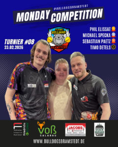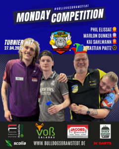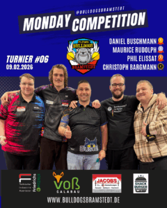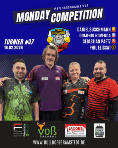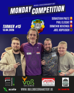 Die Monday Competition ist eine offene Turnierserie, die immer Montags ab 18:45 Uhr gespielt wird. Mitspielen kann jeder unabhรคngig vom Meldestatus in Liga oder Vereinen. Die Monday Competition ist ein Trainingsturnier. Das beste Dart-Training der Region fรผr Einzel- und Ligaspieler.